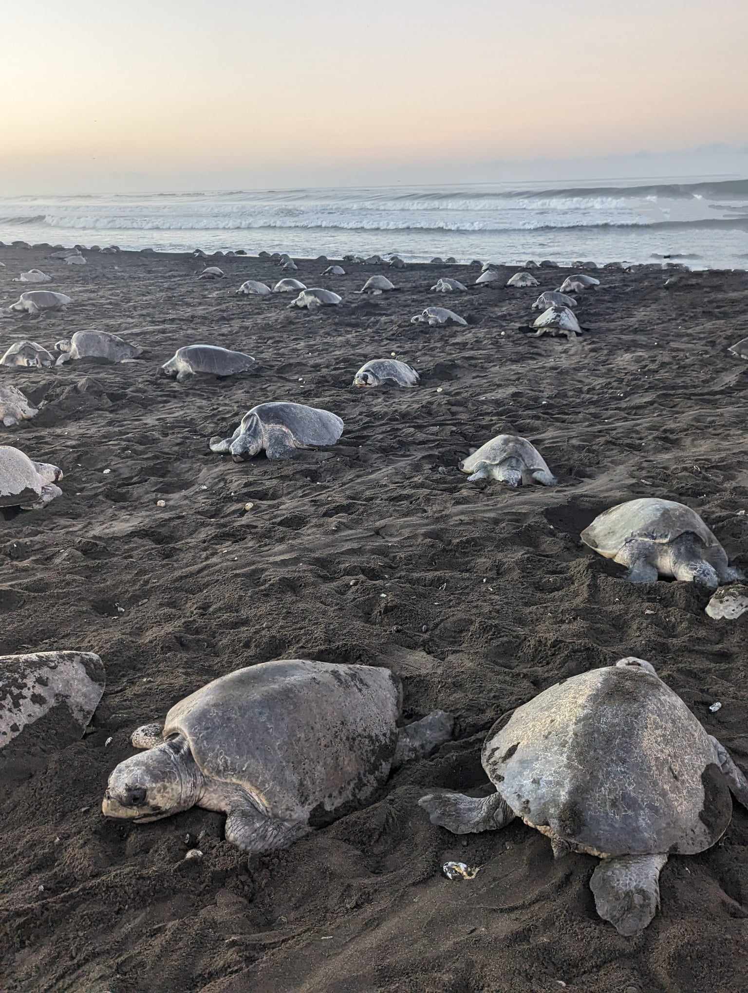 Playa Ostional is one of the best places in the world to view thousands of sea turtles laying eggs and hatching. They come to the beach and lay their eggs in the black volcanic sand.